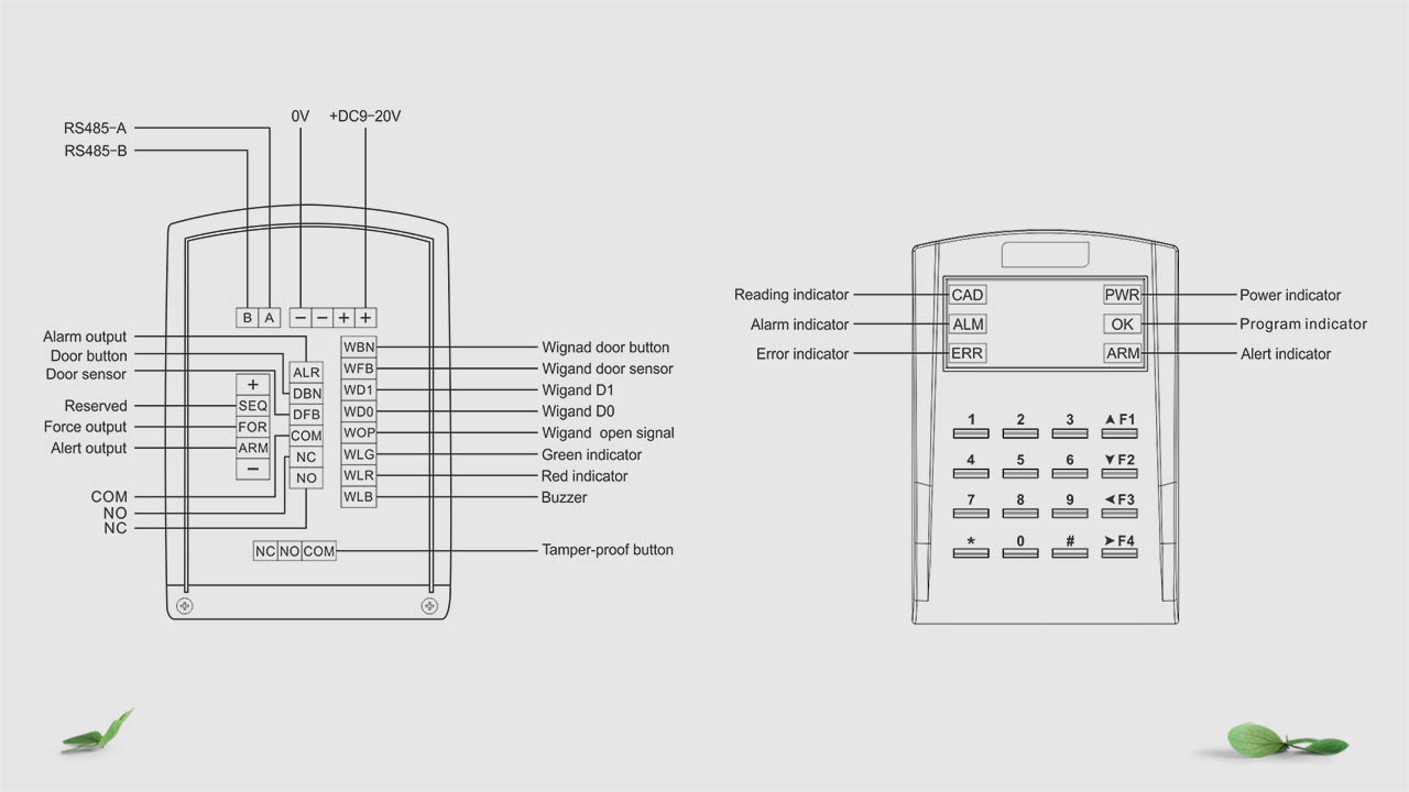 | Door open output interface | 1, including COM/NO/NC |