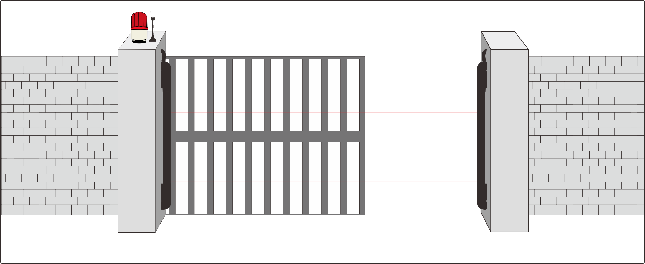 - Typical applications of the system include detection of people or material obstacles near access gates such as: 1.High-speed folding doors and sectional doors, 2.Sliding doors and gates.