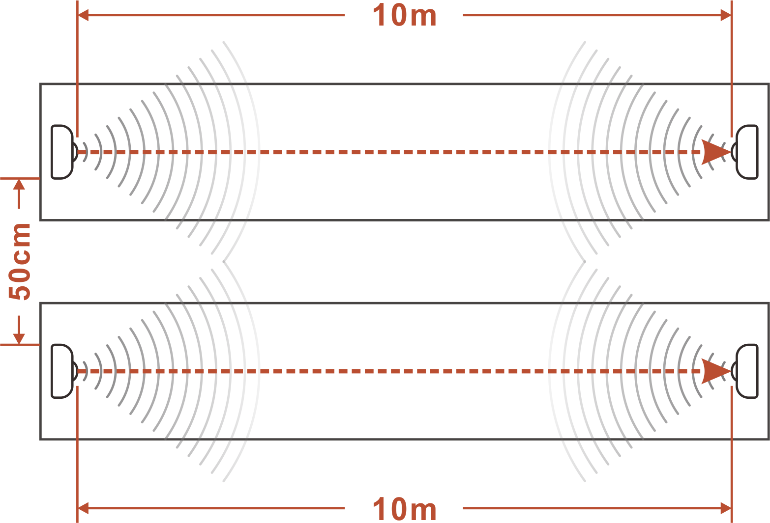 The minimum distance is 50cm if the RX and Tx of 2 pair photo sensor with 10m detection distance.