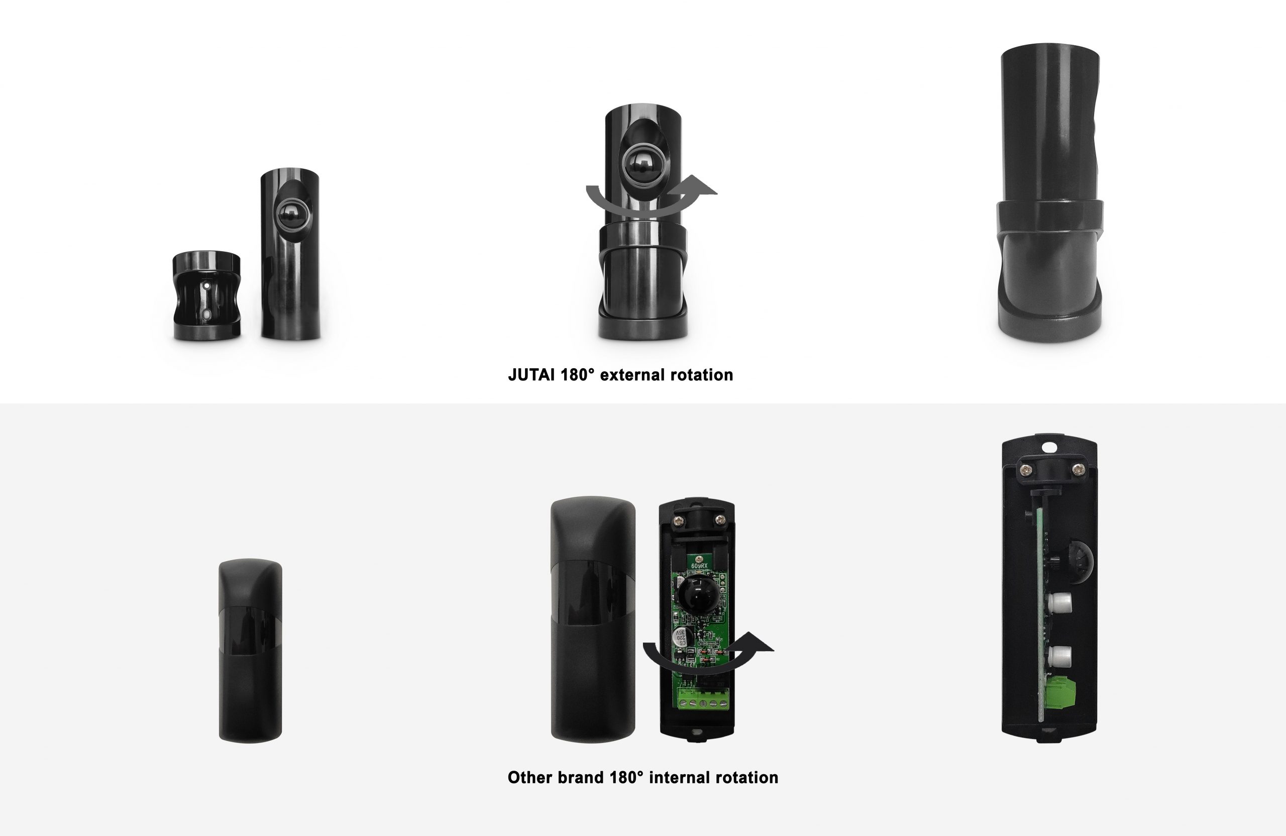 JUTAI IS-30R has won customers’love with its unique appearance design. When installing, adjust the angle without opening the cover, and directly rotate the infrared beam. When it is rotated to a proper angle, the screw on the tail can be locked. For other brands infrared photocell, you need to open the cover to adjust the angle. If the transmitter and receiver are not properly aligned, open the cover to re-calibrate, which increases the inconvenience of installation;