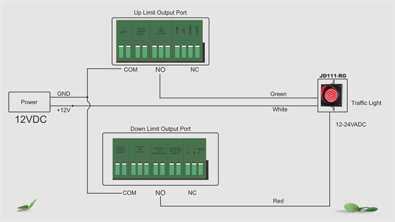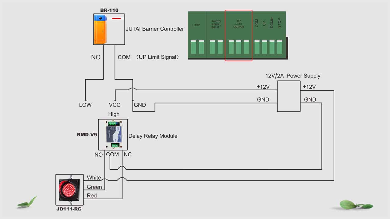 JUTAI BR-C intelligent barrier control panel has a perfect design. It has a Safety Loop Sensor Interface (with JUTAI LD-100), Safety infrared Photocell Interface (with Model IR-20), and Traffic Signal light Warning Interface ( with JD112HF-C), this Connection Details Shows how to connect JUTAI signal light, we only need to connect the light to three interfaces G.COM, R Port of BR-C Controller, and take Power Supply directly from the control board. no need for additional external power supply.