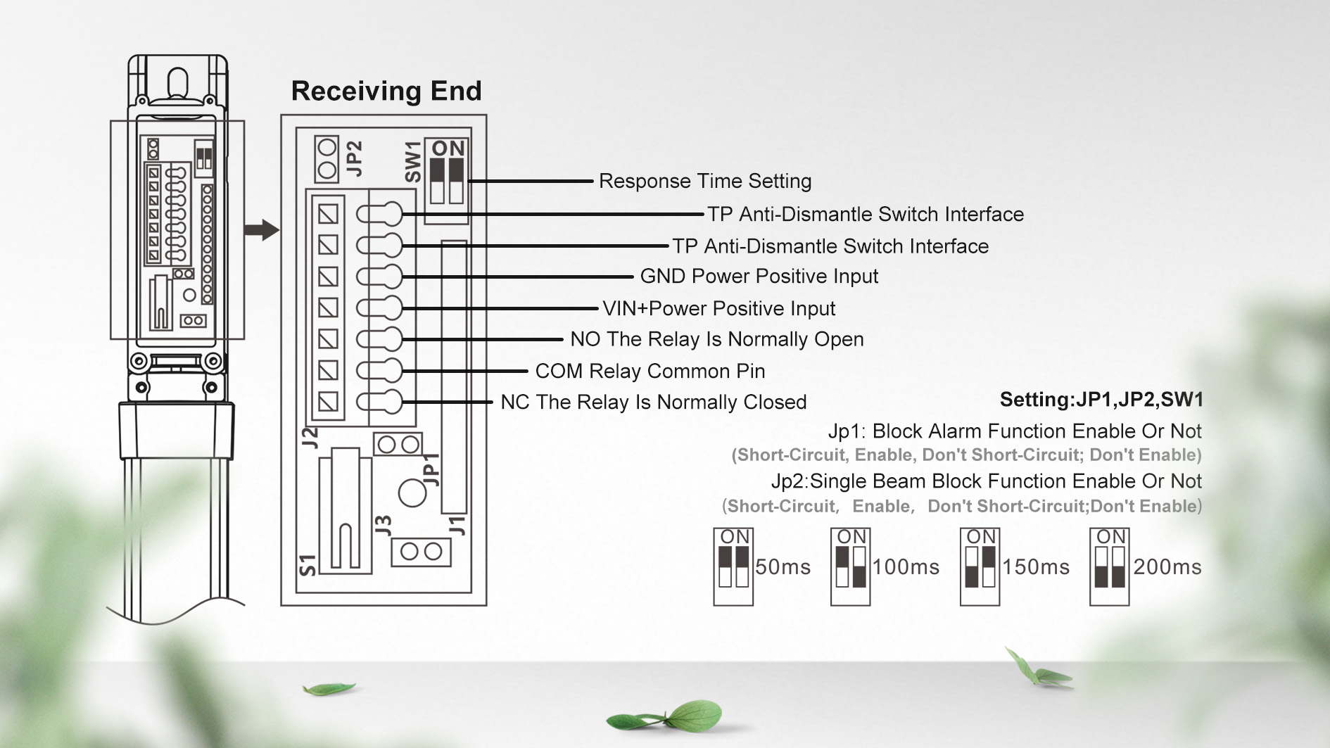 ◊ High anti-false alarm, avoid being affected by leaves, blowing debris and small animals and alarming.Built-in relay signal, can be directly connected to the alarm to use.With anti-dismantling alarm function, when this function is enabled, if the infrared beam is forcibly removed, red triggers the alarm to alarm to protect the safety of your home and property.