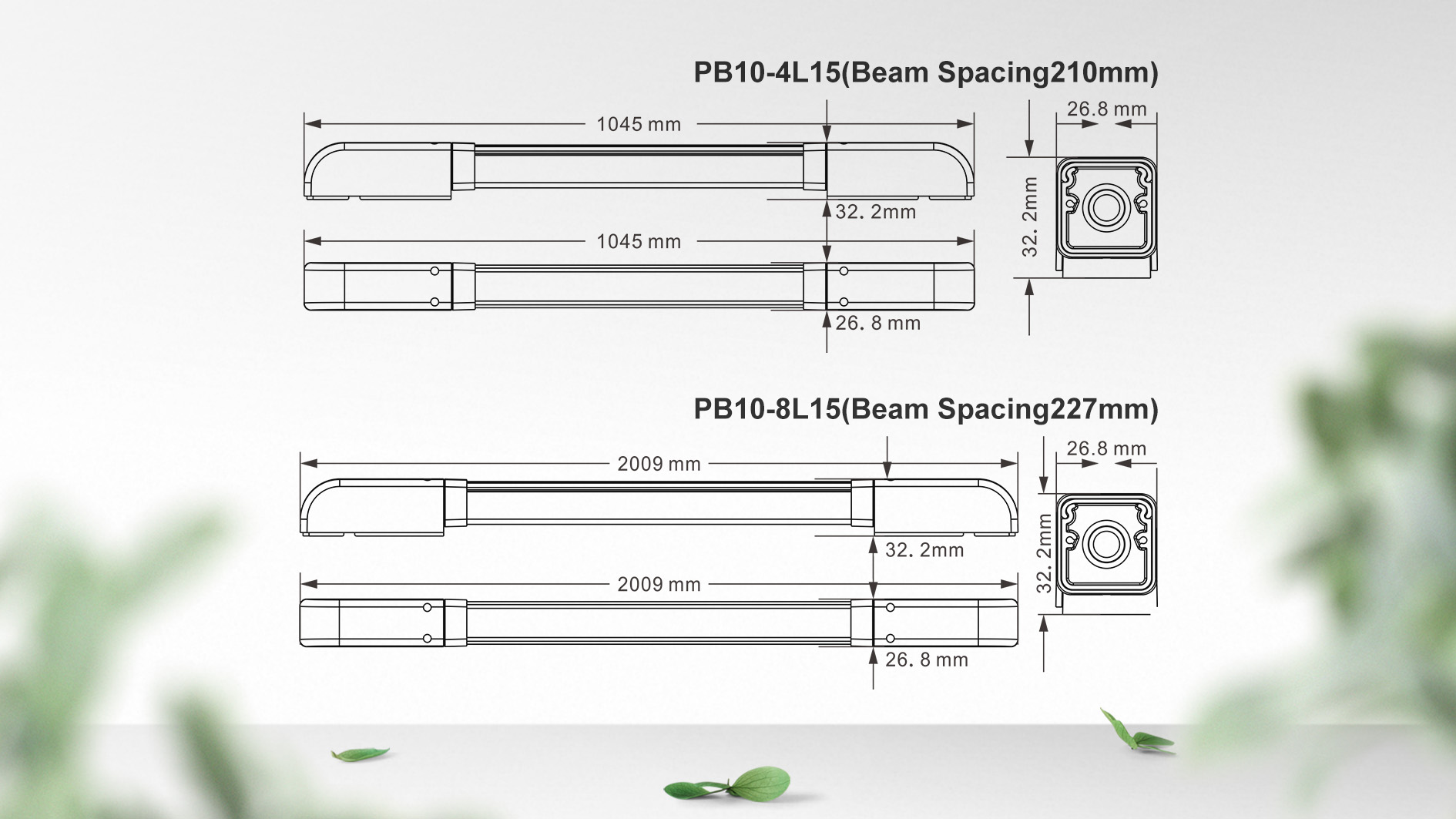 Size of PB10-4L15 and PB20-8L15 Curtain Photocell