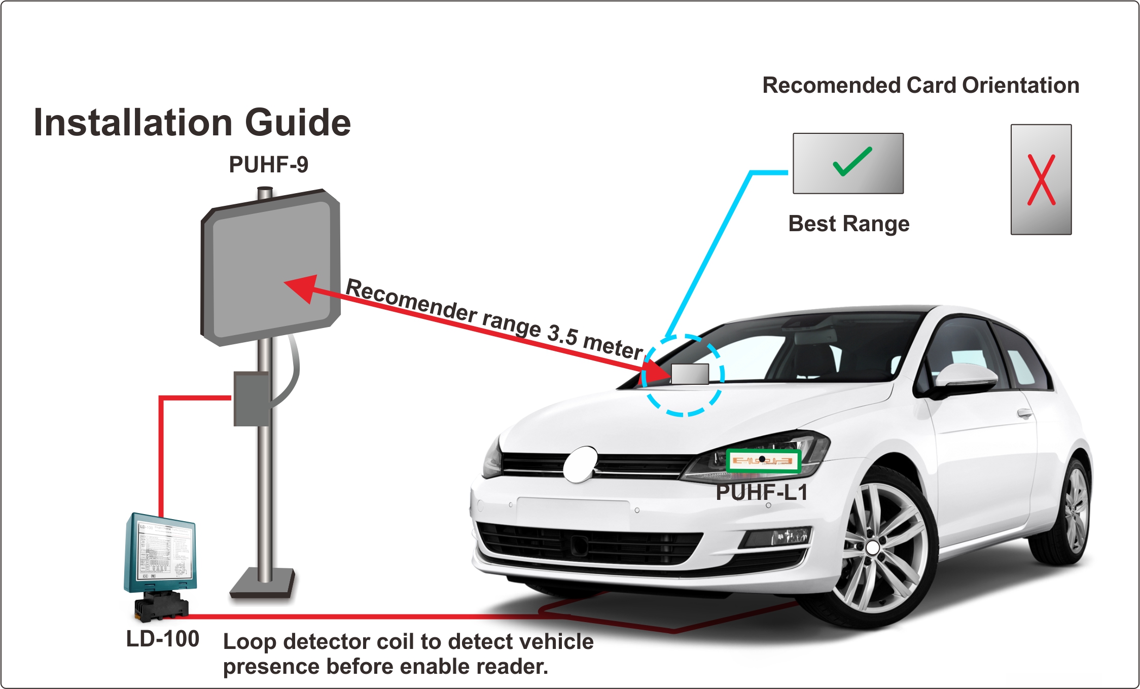 Reading range will decrease if there is metal tinted solar film such as Air-cool and etc. UHF can NOT pass through solar film with heavy metal oxide such as VKOOL. If heavy metal oxide total block UHF signal, might require user to wind down windows for about 20cm to allow UHF signal penetration into car and read card.