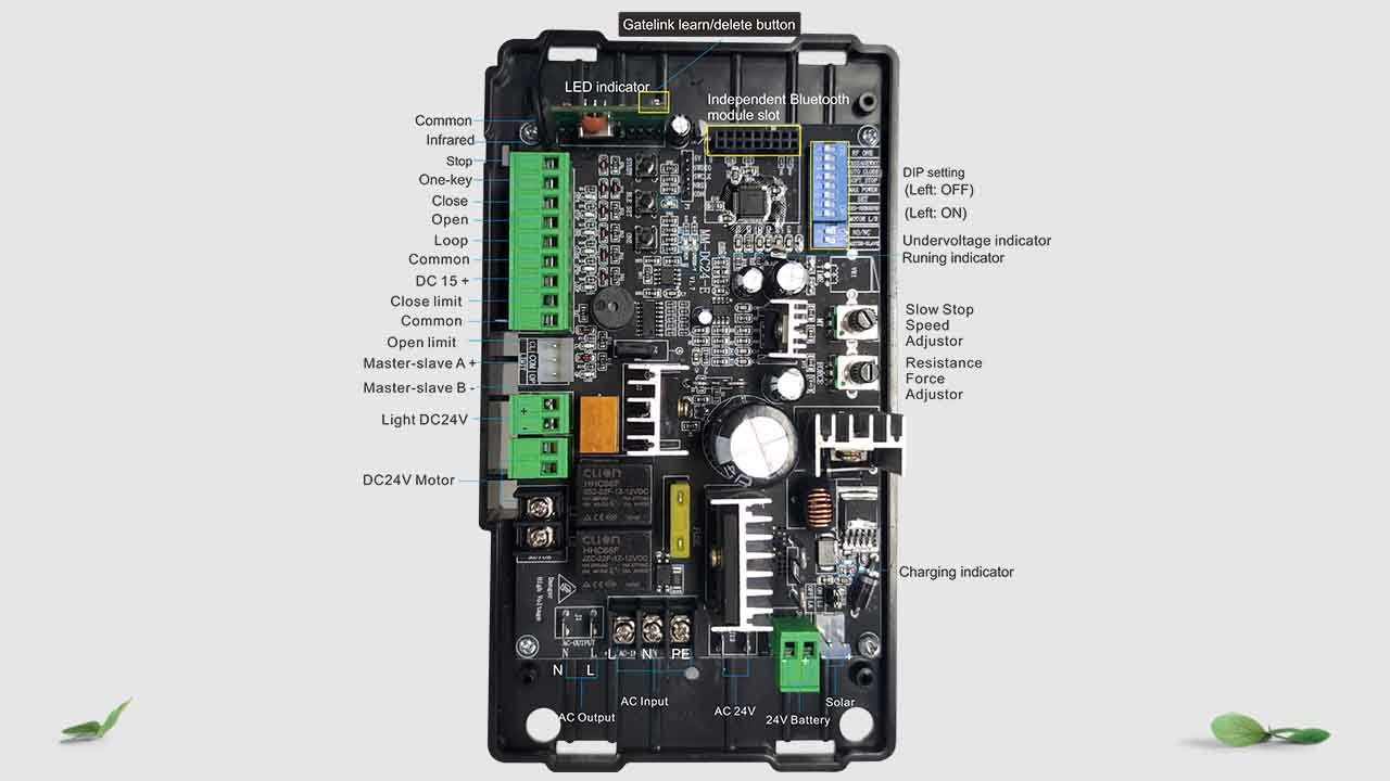 In order to make the installation and configuration easier, we have developed this intelligent one button learning sliding door control board. The control board adopts advanced microcomputer chip, digital control, more practical functions, higher safety performance, easier installation and configuration. Fully compatible with the smartphone app network (WiFi/3G/4G/5G) control and bluetooth control and many other features.